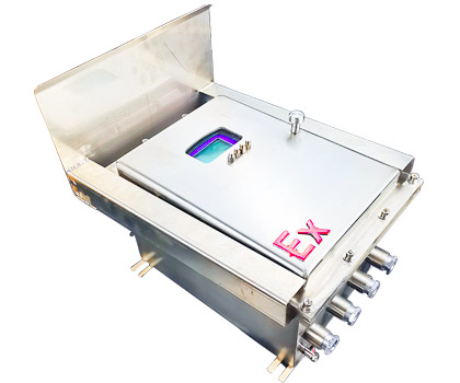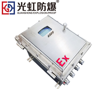 防爆按鍵儀表控制箱采用增安型結構內裝元件采用隔爆型元件或增安型的元件或一個隔爆型主腔內裝各種元件;或兩種結構結合成一體; 外殼采用采用高強度鑄鋁合金制成外表面靜電噴塑內裝的元件有按鈕控制開關儀表繼電器或各種功能模塊其中按鈕控制開關電流表和電壓表指示燈均為防爆元件控制箱內部元件功能控制開關有多種功能可供選擇.指示可根據用戶的要求進行排列可實現多種燈也有多種顏色可供選擇由于該產品變化多端訂貨時請提供線路圖.
