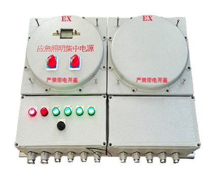 應急照明集中電源防爆箱采用模塊化設計,各種回路可以自由組合,內裝高分斷小型漏電斷路器或塑殼式漏電斷路器,通過操作防爆殼體外的手柄而實現分合,本產品為復合型防爆結構,開關箱采用隔爆型結構,母線箱采用增安型結構。 適用范圍 1、1區、2區危險場所或20、21區危險場所。 2、IIA、IIB、IIC爆炸性氣體環境或者可燃性粉塵環境; 3、戶外戶內(IP54/IP65帶防雨罩). 4、溫度組別:T1-T4/T5/T6. a型防爆應急照明集中電源箱技術參數 1.執行標準:GB3836-2000 IEC60079 2.防爆標志:EXedIICT6、DIPA20TA,T6 3.額定電壓:AC380V/220V/50HZ 4.額定電流:10A 5.防護等級:IP54、IP65 6.防腐等級:WF2 7.使用類別:AC-3AC-4 8.引入口規格:G3/4“-G1 1/2” 9.電纜規格:Ф9mm-Ф25mm
