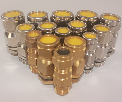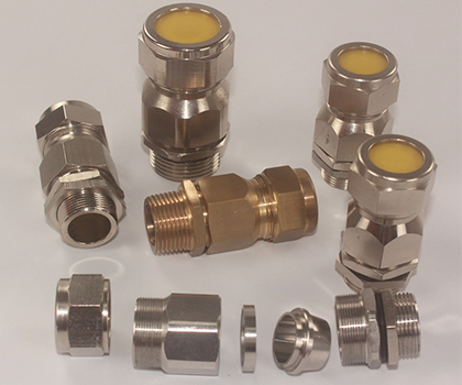 防爆填料函主要由:螺母、密封圈、入口接體、中接體、錐度套、壓緊螺母、墊片、密封圈可鎧裝電纜組成。螺牙規(guī)格 :共有四種,分別為公制牙MG牙規(guī),德制牙PG牙,美制牙NPT錐螺紋,英制牙G(PF)管螺紋,美制牙為錐螺紋,英制牙為管螺紋型。